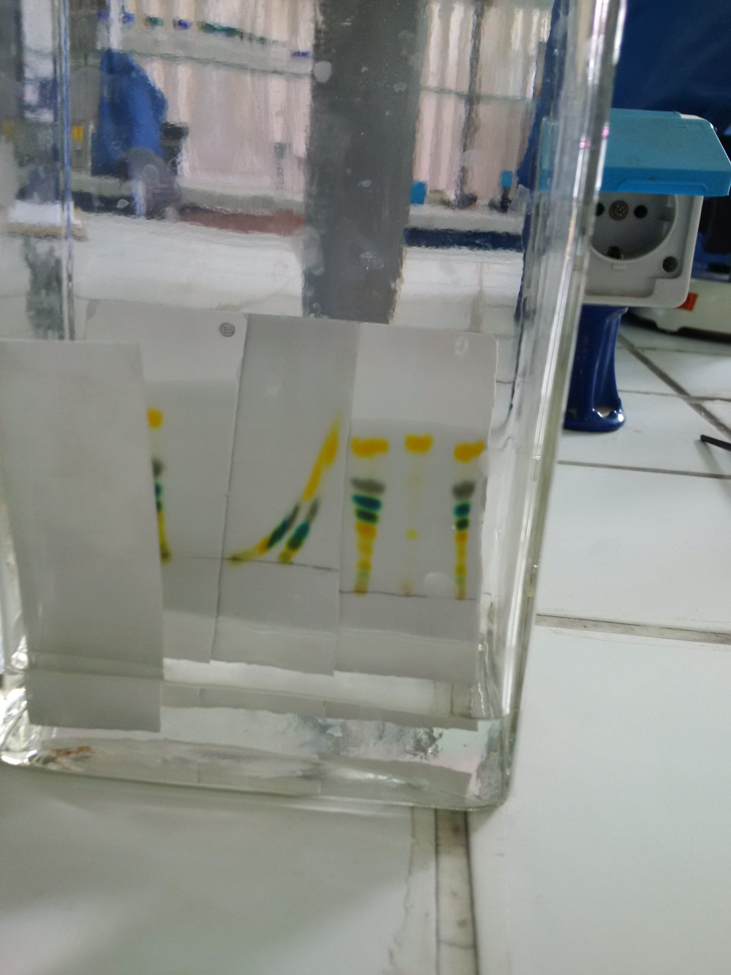 ترم یک کارشناسی که بودیم سر یکی از کلاسای آزمایشگاه باید کاروتینوئید و کلروفیل برگ چندتا گیاه رو روی هم میریختیم و به روش کروماتوگرافی از هم جدا میکردیم. کار ساده ای بود به حدی که حتا نمره هم نداشت… ولی به طور خوش اقبالانه ای نمونه گروه ما خیلی قشنگ از آب درومده بود… ینی همون طوری که توی عکس میبینید (نمونه سمت راست که 3تا ستون تشکیل شده) خیلی صاف و دقیق اجزا از هم جدا شده بود. اما داستان بعد از گرفتن این عکس اتفاق افتاد.